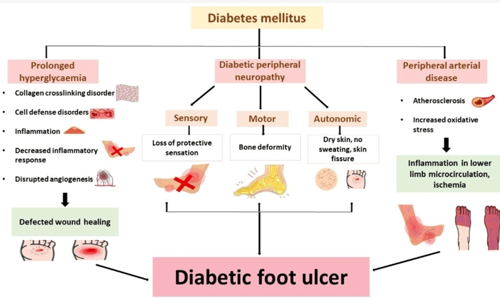 Diabetes mellitus, a chronic metabolic disorder characterized by hyperglycemia, is associated with several long-term complications, including those affecting the feet. Diabetic foot complications are among the most feared and disabling consequences of diabetes, often leading to amputations and significant morbidity. As an endocrine surgeon, understanding the pathophysiology, prevention, and management of these complications is crucial in reducing the burden of diabetic foot disease.